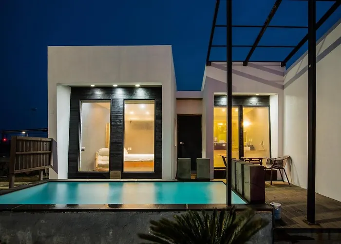 Located 700 metres from Woljeongri Beach, the 1-bedroom Aqua Beautique Poolvilla provides access to an outdoor pool area. Featuring a patio, the cosy villa is situated 2.7 km from Jeju batdam theme park.